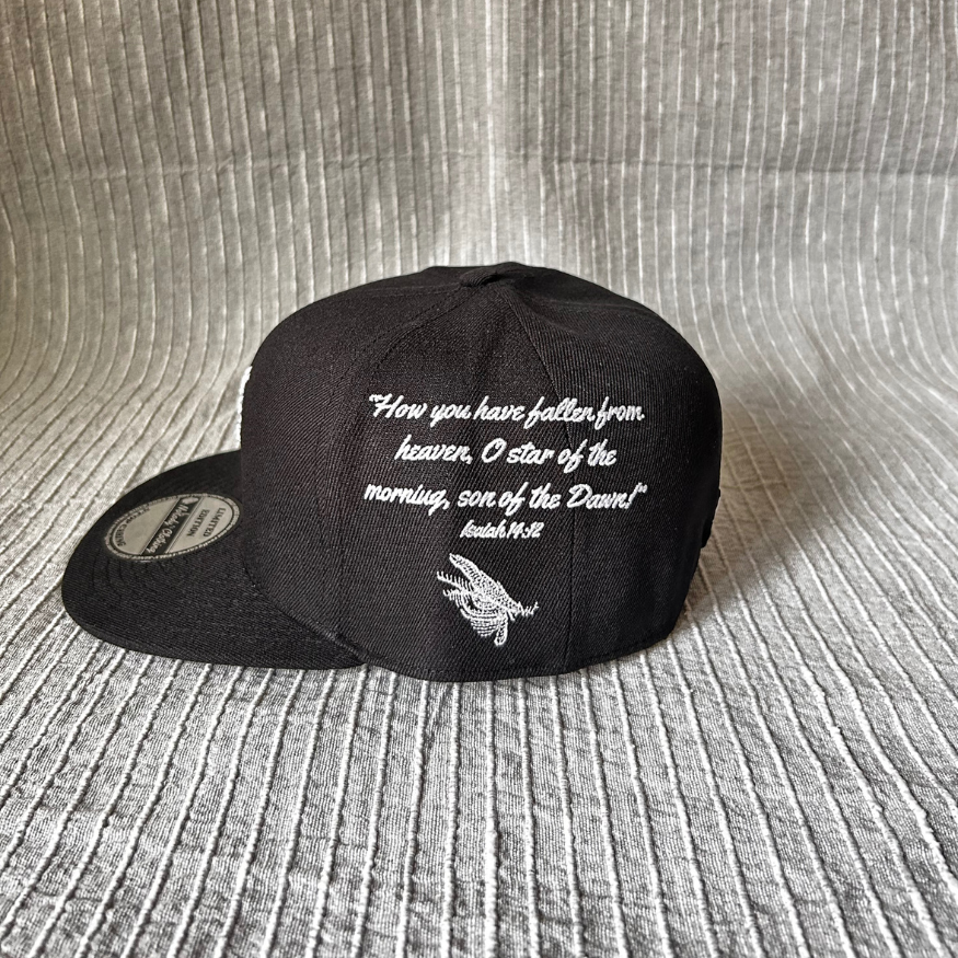 Davanti troviamo il Poison Tree con ricamo 3D, ispirato alla crescita interiore e a una possibile rinascita del soggetto che attraversa delle difficoltà. Il lato destro ospita la figura del Fallen Angel, icona di ribellione, caduta e rinascita: un richiamo a chi non ha paura di rialzarsi. Sul lato sinistro, il versetto di Isaia 14:12 accompagnato dall'occhio del Fallen Angel che piange. Esso rappresenta la riflessione, il dolore e la consapevolezza. Infine, sul retro, il logo del fantasmino che chiude il design come marchio autentico e riconoscibile del brand.
